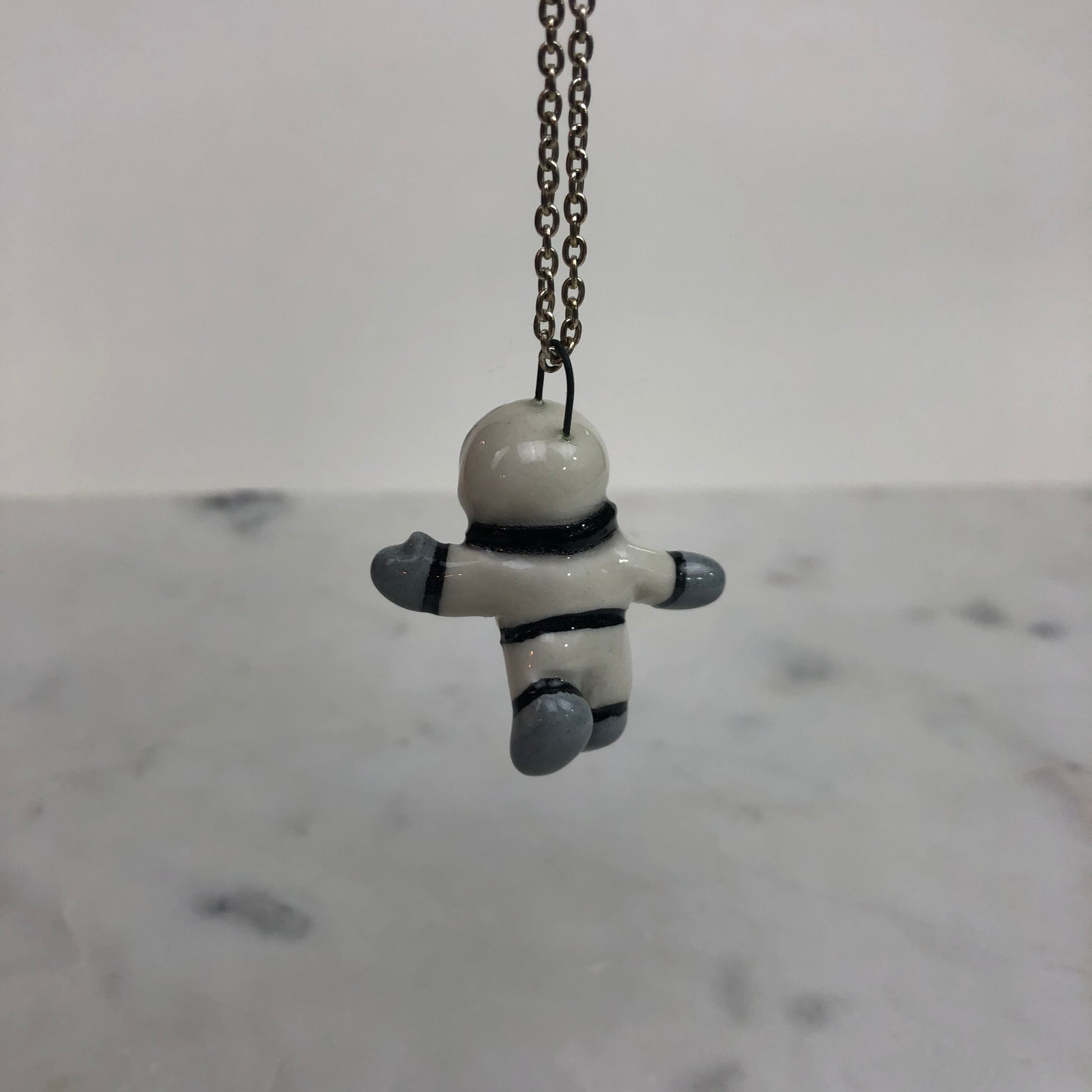 There couldn't be a cuter little Space Person. They are a natural born explorer. Sure to keep your sense of adventure alive as you go about your day. They are sculpted by hand out of porcelain clay, painted and glazed and finished off with a beautiful silver face shield.