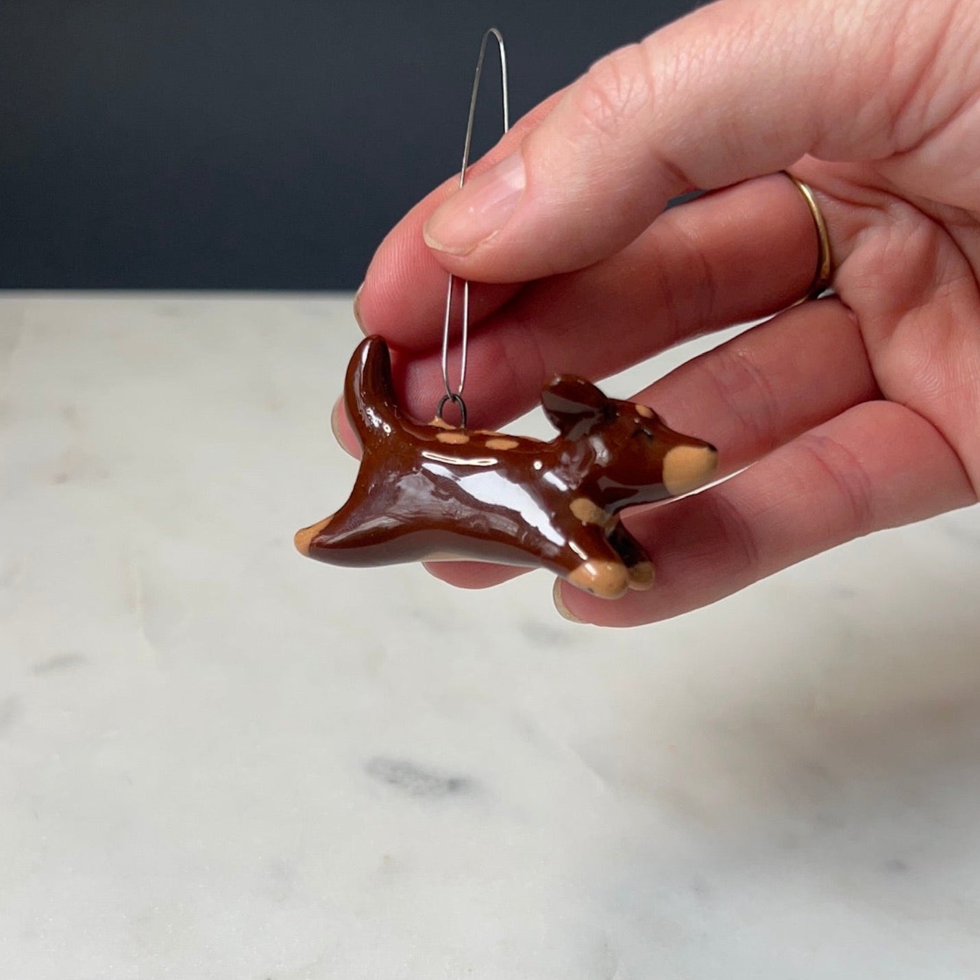 Dog Ornament. Leaping about, ears flopping this pup is happy! This would make a fun ornament in your tree or garland or heck, hang it from the chandelier!