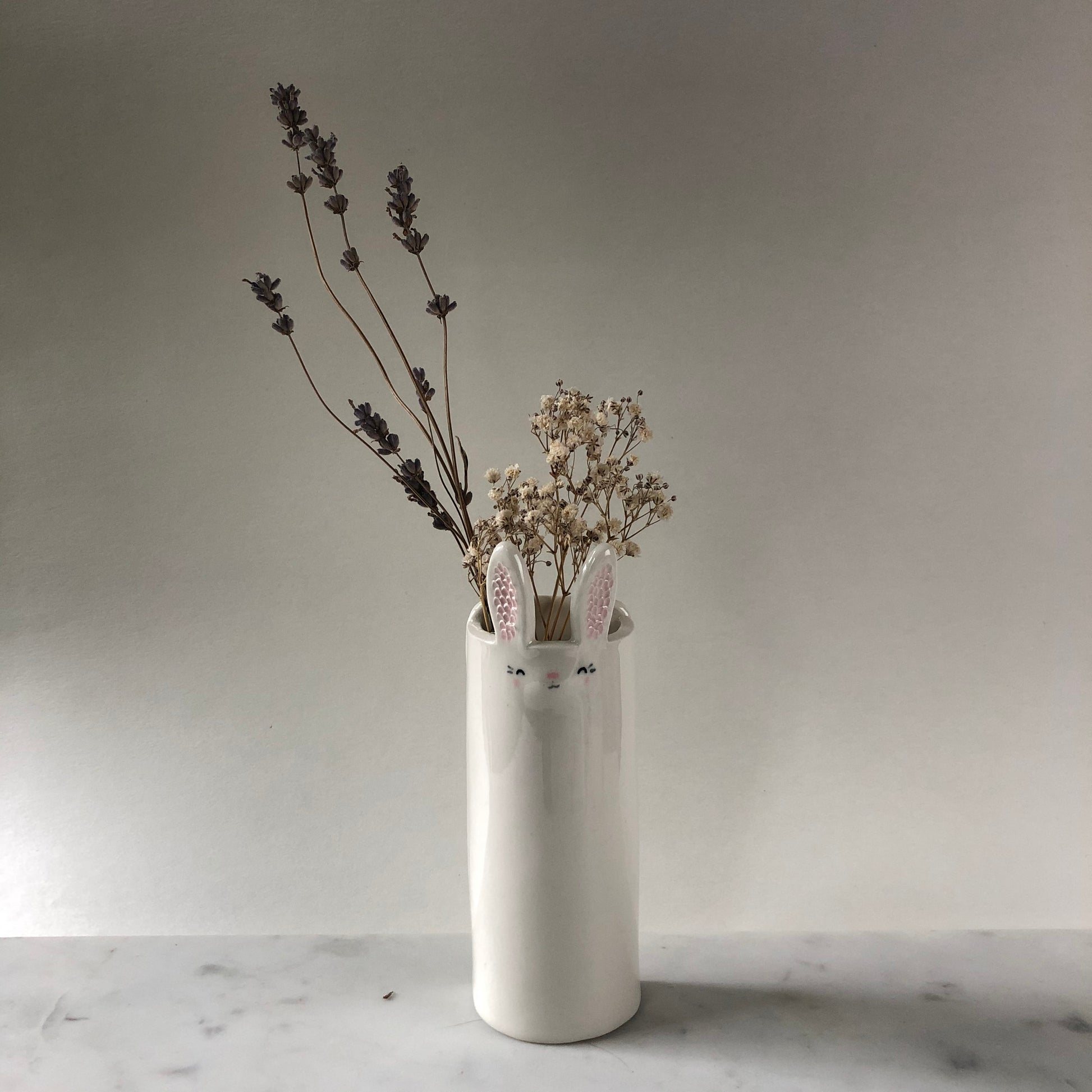 Sometimes we don’t have space on our shelves for extra things, and sometimes we have little hands that get places and do things... destructive things. For those of you I have made some hanging wall cuties. These little bunnies hang on your wall to help bright up your space. They can be used as a planter, a place for your dried or fresh flowers. Think outside of the picture frame to add an interesting design element to your gallery wall.
