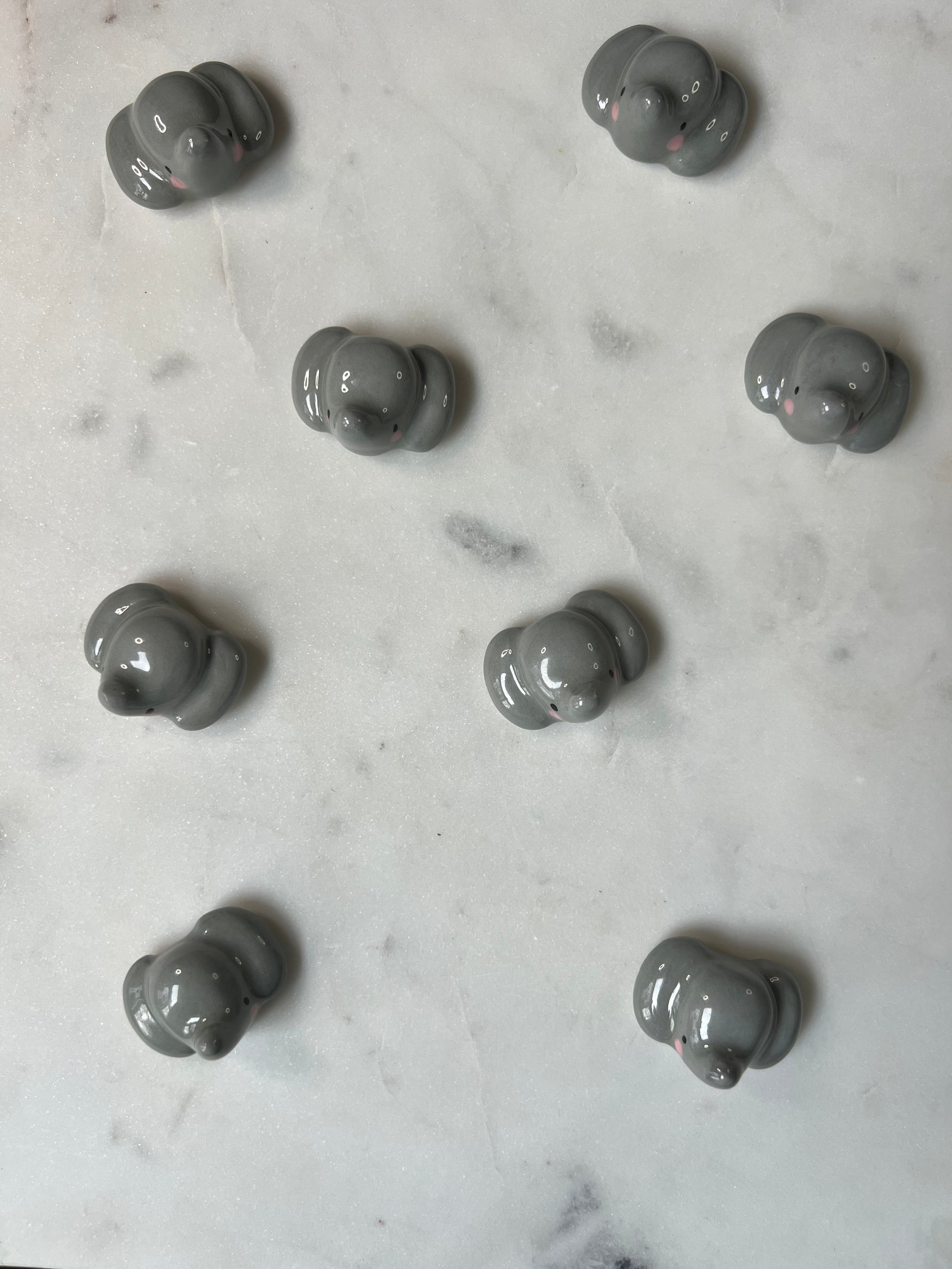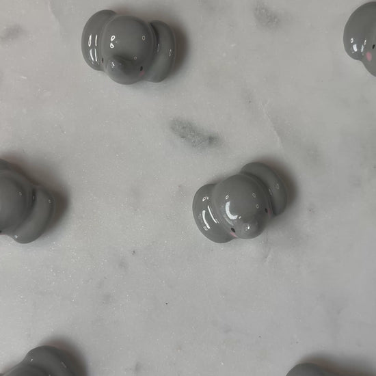 This little cutie would be a great addition to your fridge. With a strong, rare-earth magnet on the back, these little guys can hold your pictures, notes, and postcards with ease! Handmade and painted white porcelain ceramic with a lovely smooth clear glaze.